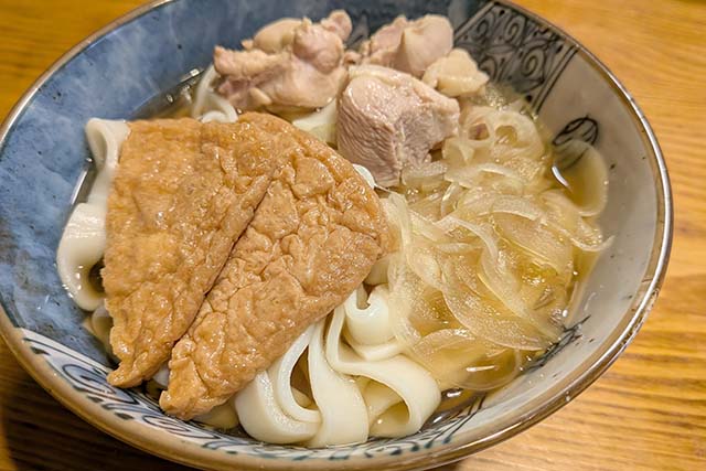 鶏のうま味が溶け出し、つゆ全体のコクが深まります。味噌煮込みきしめんにもよく合います。