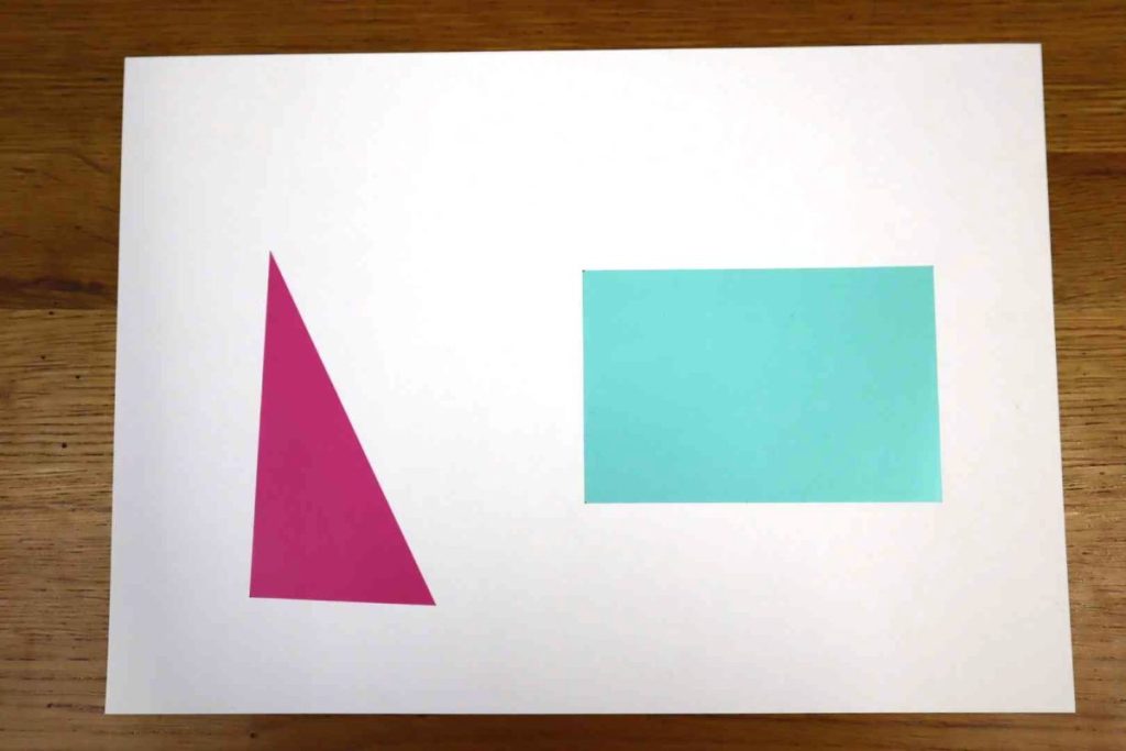 この重なりは三角形→台形と変化して、それがいつまで続くのかにも注目です。実は次は五角形に変化。最後にも形が変化するのですが、どんな形になるのかぜひ試してみてください。また、三角形同士だったり、正方形と長方形でやってみたり、形を変えてやってみるのもおすすめ。