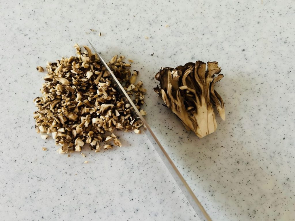 1. まいたけ、ニラはみじん切りにする。
