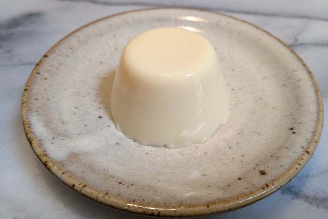 プリンがなかなか落ちないときは、型をお皿のへりに軽くぶつけて衝撃を与えると落ちやすくなります。