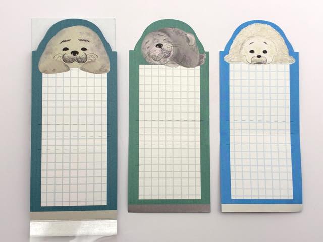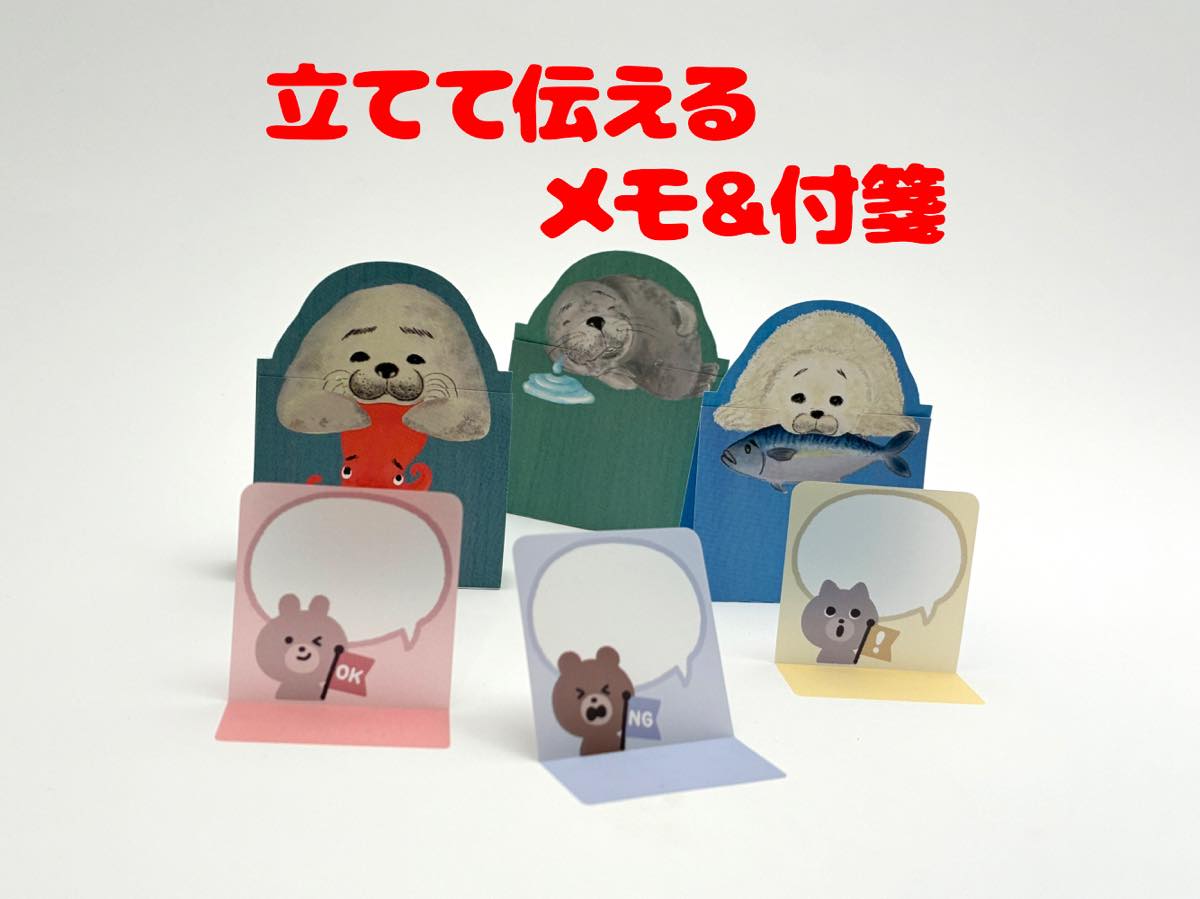 エポックケミカルから発売された「はむっとメモ」は10種類のバリエーションから選べ、それぞれ3デザインずつ入っています。下側が糊付けされていて、使いたいところから剥がすことができます。