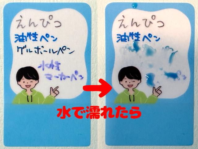 そこで、フィルム素材になった付箋を使えば、水滴にも強いので文字が消えて見えなくなる心配もありません。