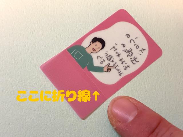 また、折り線の位置で折ると、付箋に書いたメッセージが立ち上がるようにしました。