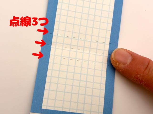 メモの高さの中心あたりに横向きに点線が3列入っています。ここが実はポイントなんです。
