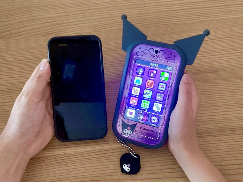 ほぼ大人用スマホと同等サイズで、本物のスマホと比べても遜色はありません。「クロミ スマホ ワイド」の方が少し軽いので子どもには持ちやすいと感じました。