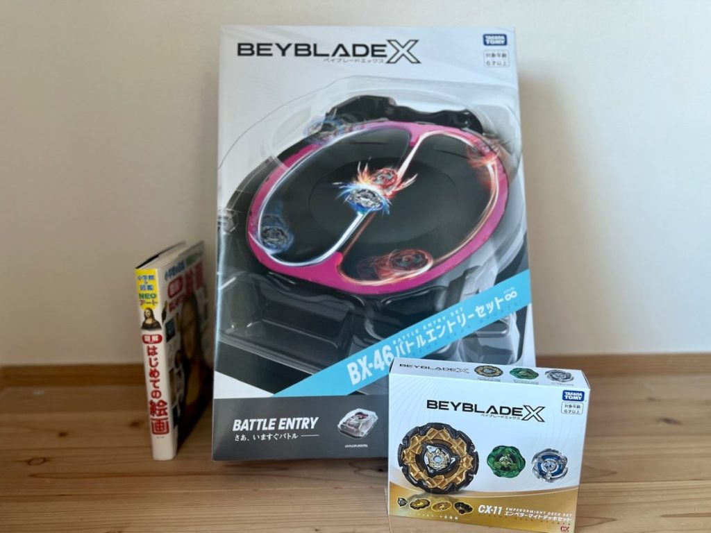 特に、10月に発売したばかりのBEYBLADE X「BX-46 バトルエントリーセット∞」が初心者にも、すでにベイブレードで遊んでいる方にも、どちらにもオススメです! 新型スタジアム、ベイブレード2個、ワインダーランチャー2個がセットになり、すぐにベイブレードが始められるエントリーセットです。
