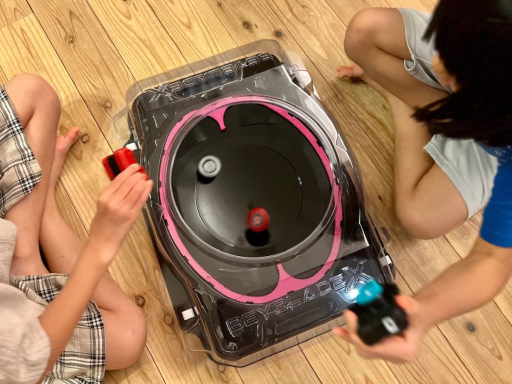 筆者も新しいスタジアムで子どもたちと対戦してみました。対戦中の2つのベイにXダッシュが起こりやすくて、予想が付きにくく、突発的なアクションも多いので、スキルの差のある大人と子どもでも楽しみやすいと感じました。