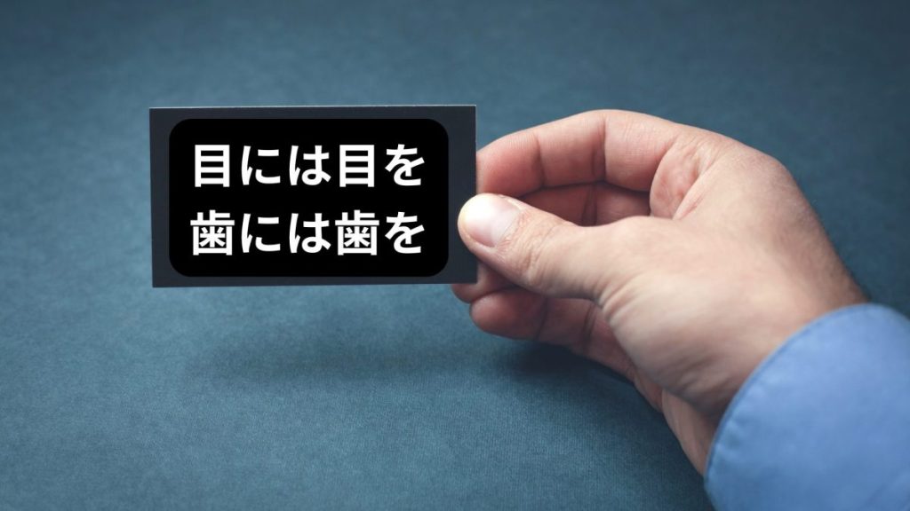 受けた被害と同等の報復をすること。古代バビロニアのハンムラビ法典に由来する言葉。