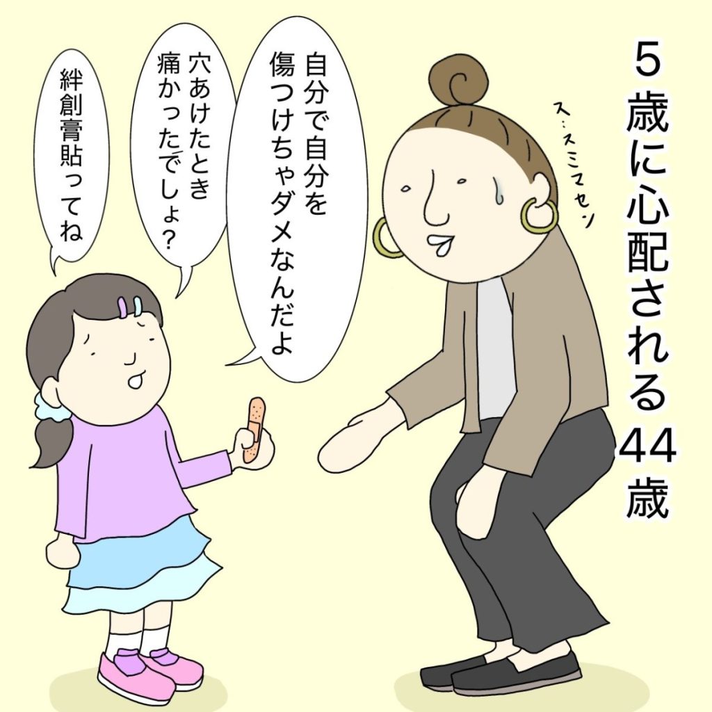 子どもにとってピアスは怖い? 「自分で自分を傷つけちゃダメなんだよ」…5歳の優しさ【育児マンガ】