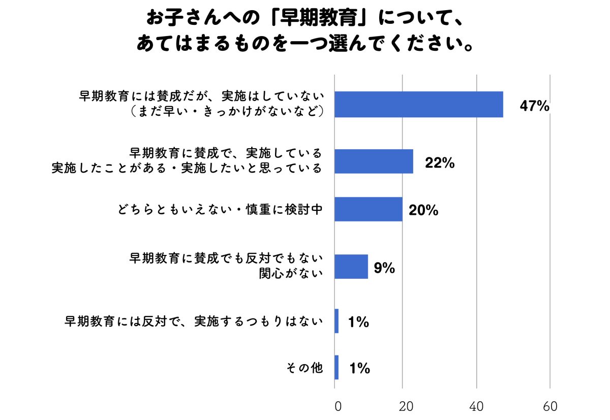 設問:・お子さんへの「早期教育」について、あてはまるものを一つ選んでください。