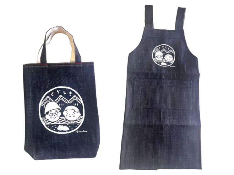 ショップ内では、国産ジーンズ発祥の地・倉敷に因み、ジーンズ生地で製作されたバッグやエプロンをはじめ、ポップなデザインのマスキングテープなど特別展限定のオリジナルグッズも多数販売されています。