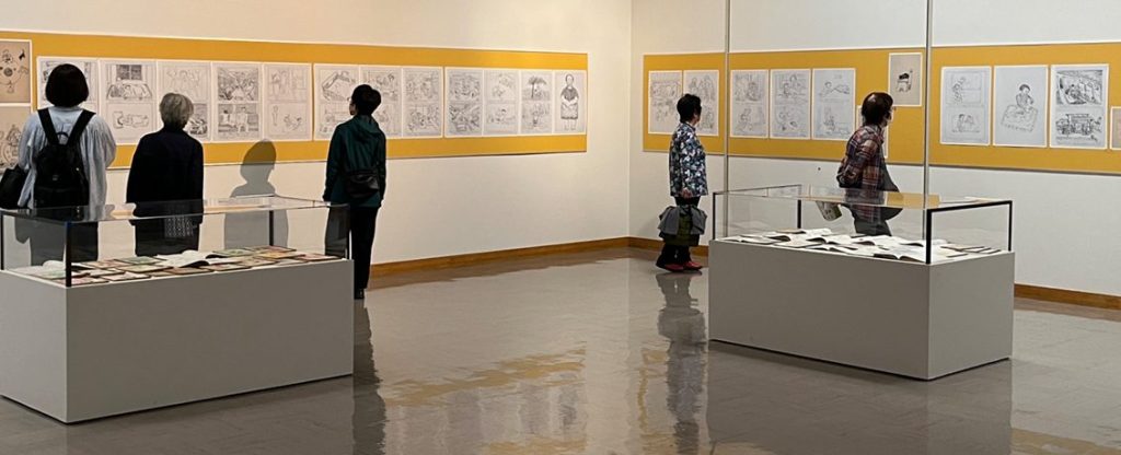 太郎さんの作品は、大ヒット作『大家さんと僕』をはじめ、『マンガ ぼけ日和』、『ぼくのお父さん』などのパネルを多数展示しています。