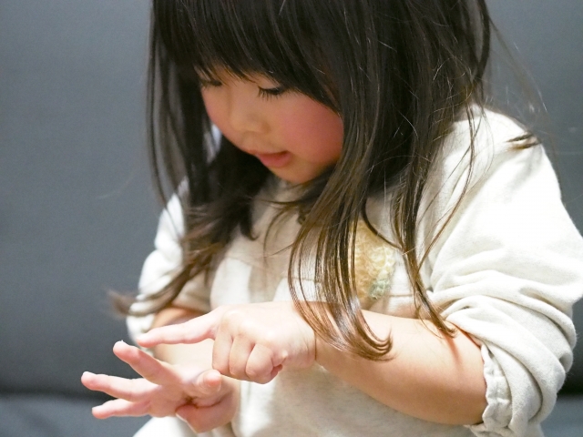 指は、最も身近で便利な、数を数えるための道具です。いつでもどこでも、すぐに使えるため、古来より民族を超えて、広く使われてきました。幼児期において指を使って数えることは、数というものを視覚的に理解するために欠かせない行為となります。片方の手では5までの数を数えることができるうえ、5本の指でひとつの手となり「5のまとまり」を意識できます。両手を使えば10まで数えられ、「10のまとまり」が「5のまとまり」2つ分だと言うことも視覚的に認識できます。