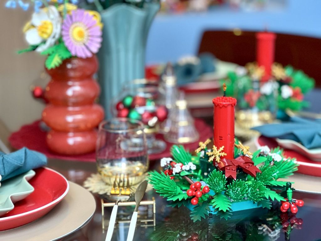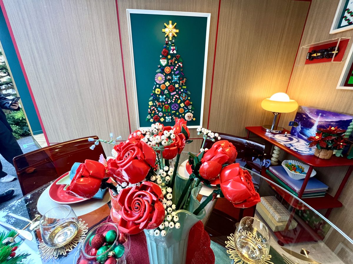 また、ダイニングルームには、テーブルコーディネートの一例もありました。ボタニカルな雰囲気で、こちらもブロックには見えないデザイン。ガラスや生花も素敵ですが、小さなお子さんがいる家庭の場合、壊れにくいレゴ®ブロックのオーナメントもおすすめです。水やりなどをする手間も省けます。