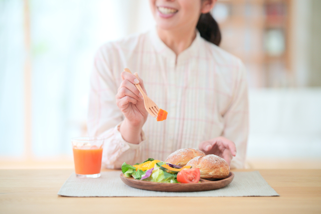 ・よく噛んでゆっくり食べる。