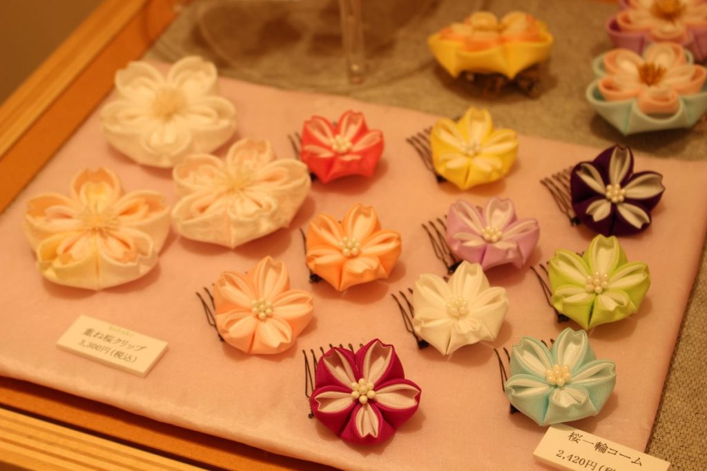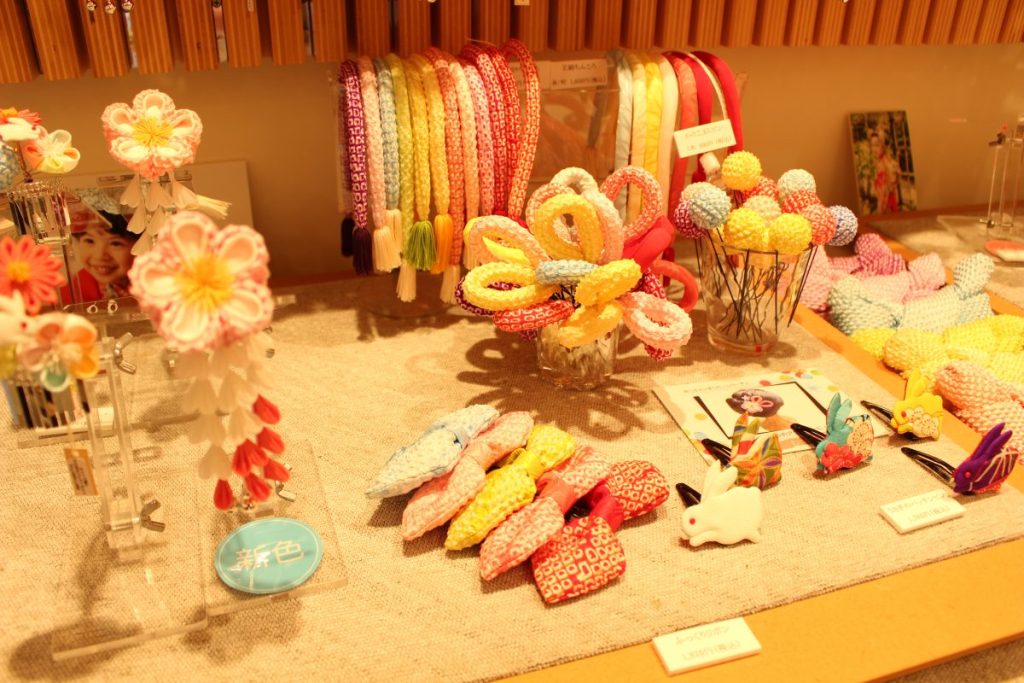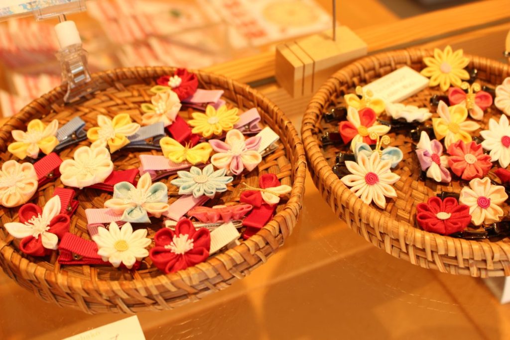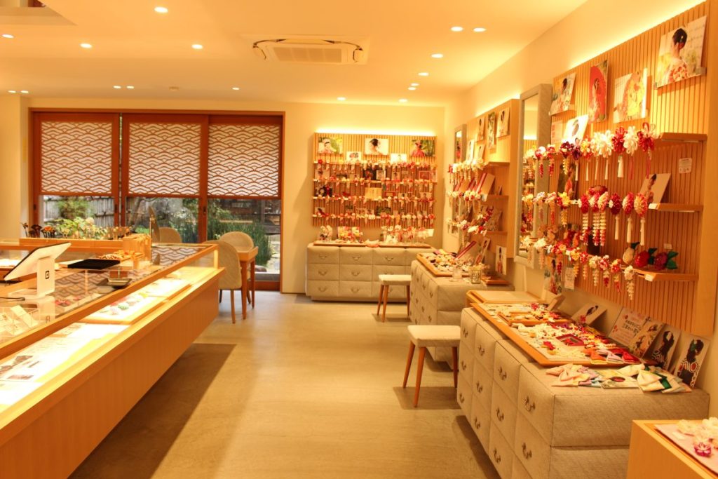 明るく綺麗な店内には色とりどりの髪飾りや和小物が並びます。