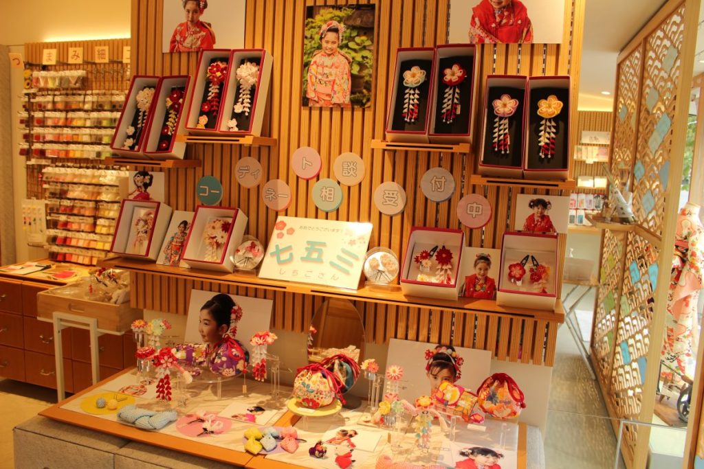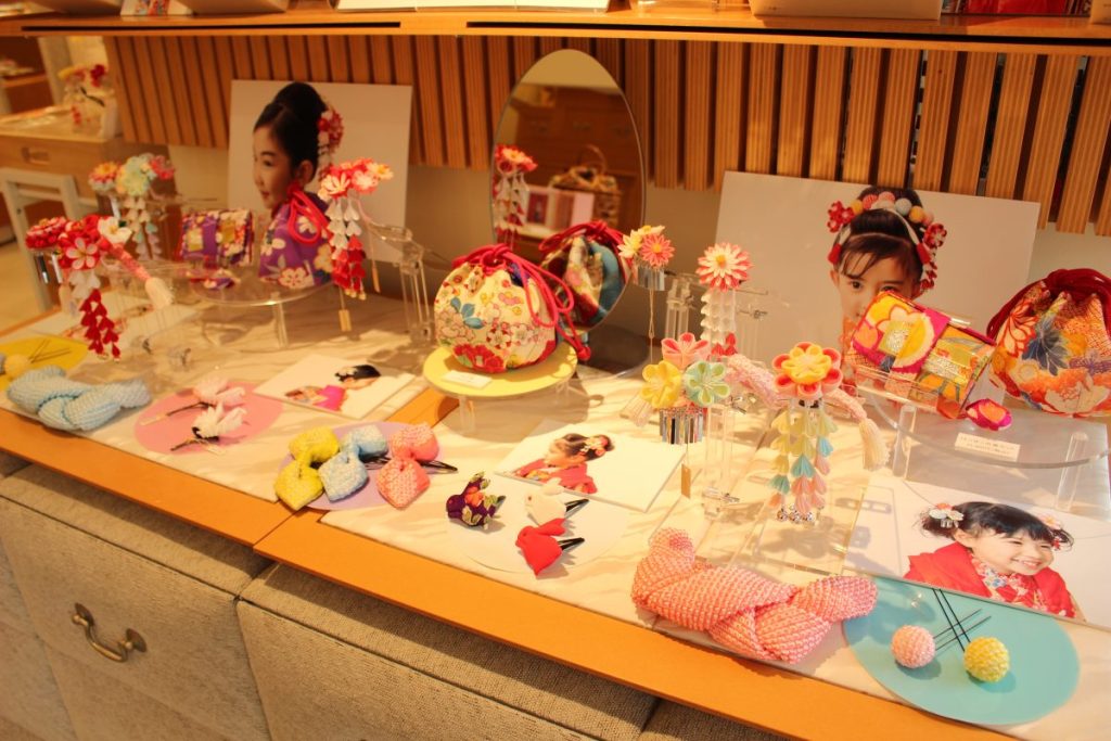 店内には、七五三や成人式など、シーン別にピッタリな商品が並べられていて、どんな髪飾りや小物がいいのか選びやすいですね。