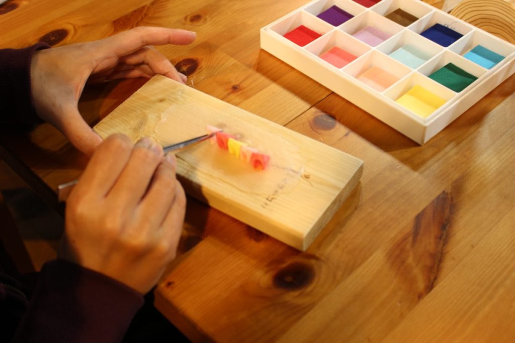 子どもや、細かい作業に自信がない方でも大丈夫。優しく職人さんが教えてくれるので、楽しみながらオリジナルのつまみ細工を作ることができます。実際に行われている、つまみ細工体験の様子を見ていきましょう。