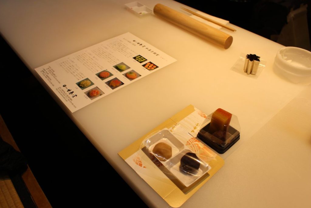 和菓子教室で作るのは、干菓子、上生菓子のういろ、練り切り、きんとんの4種類です。お菓子の内容は季節によって変わります。