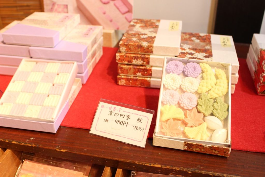 お店に入ると、和三盆で作られた綺麗な色合いの干菓子や、日本の四季を表現した上生菓子など、季節を感じる和菓子が並びます。