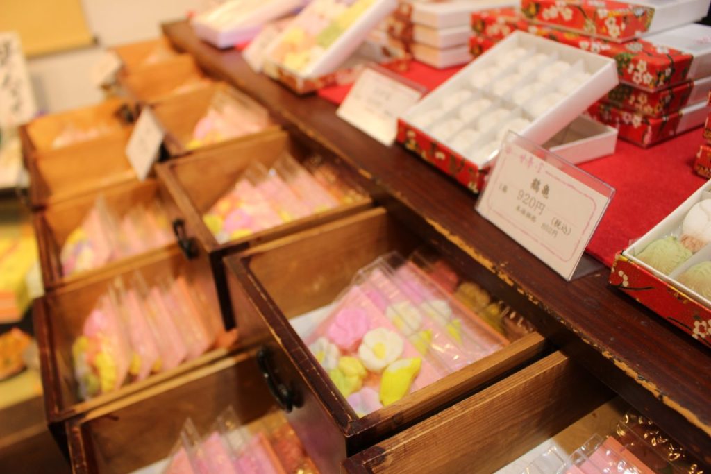 暖簾をくぐり、店内に入ると、色とりどりの商品がずらりと並べられていて、思わず「わぁ綺麗!」と声が出てしまいます。