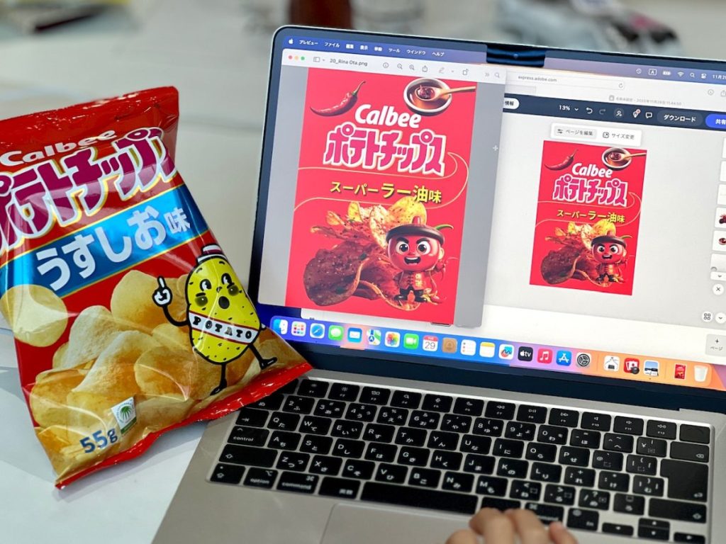ちなみに、娘は辛い味が好きで、筆者の実家が中華料理屋なので、未来の新種の唐辛子を用いた「スーパーラー油味」のポテトチップスを考案。オリジナルのキャラクターも生成AIで作成しました。