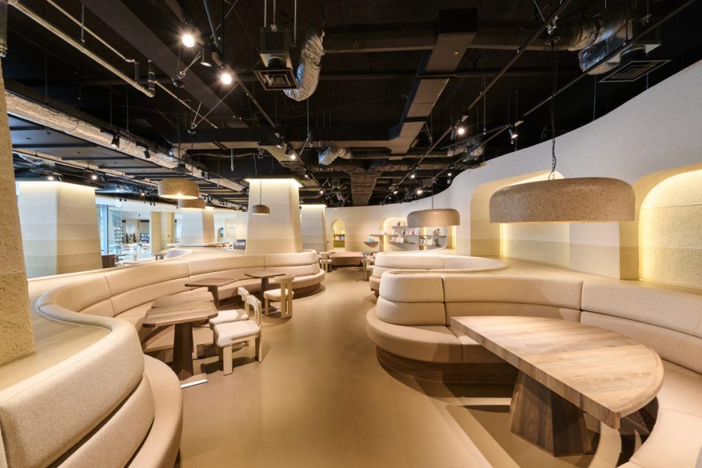 無料で利用できる1階には1000冊もの本が並ぶライブラリーやくつろげるカフェも
