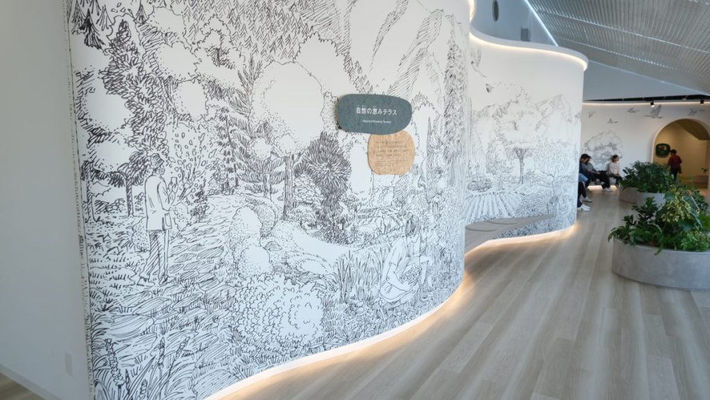 4階には世界中で実際に取り入れられている、豊かな自然と共に暮らすアイデアが集められたエリアも。休憩したり、くつろいだりと過ごし方は自由。自然に寄り添い、共感する感性を育むきっかけとなる空間です。