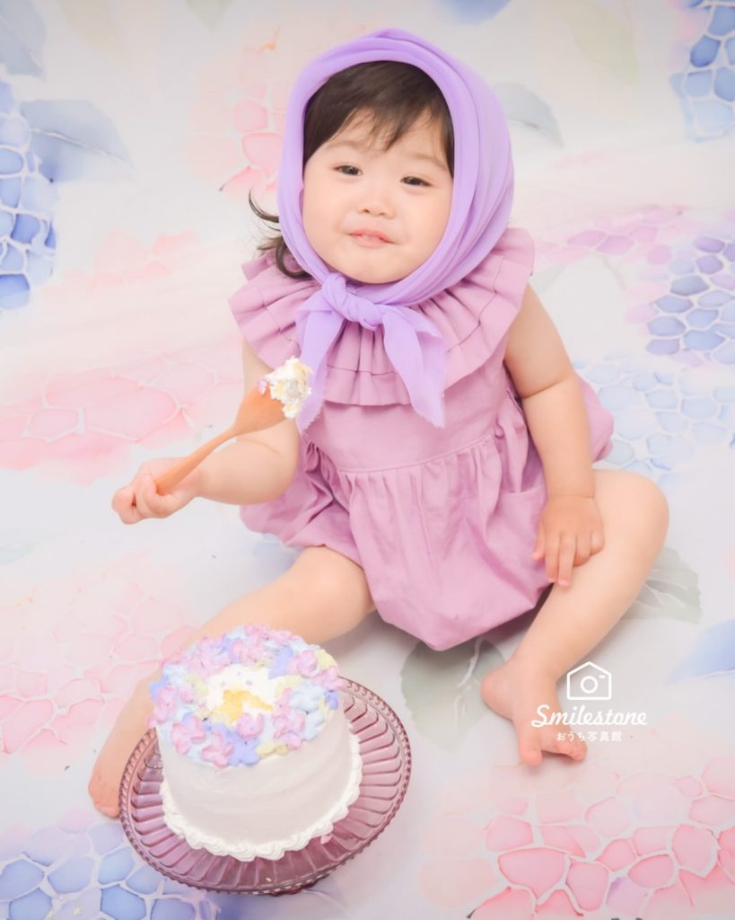 「スマッシュフォト」とは、1歳の誕生日のお祝いで、赤ちゃんが手づかみでケーキを「スマッシュ(smash:壊す)」して食べる様子を記念撮影する「スマッシュケーキ」撮影のこと。アメリカ発祥の文化ですが、日本でも人気が高まっており、フォトスタジオなどで行われる撮影スタイルとなっています。