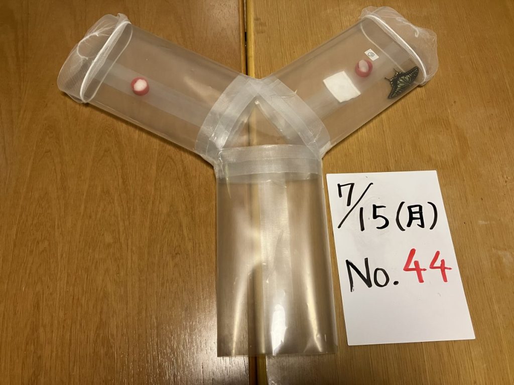長井くん: はい。アゲハ蝶の飼育は自分の部屋で、Y字装置の実験や、電気ショックを使う実験は、光の影響ができるだけ出ないように、照明が一つしかない部屋でやっています。