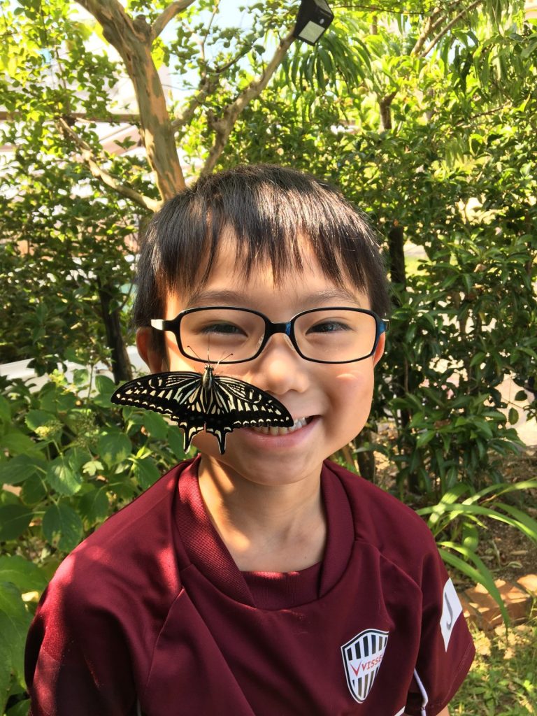 蝶に興味を持ったきっかけは芋掘りで見つけた幼虫。「かわいい」から芽生えた好奇心