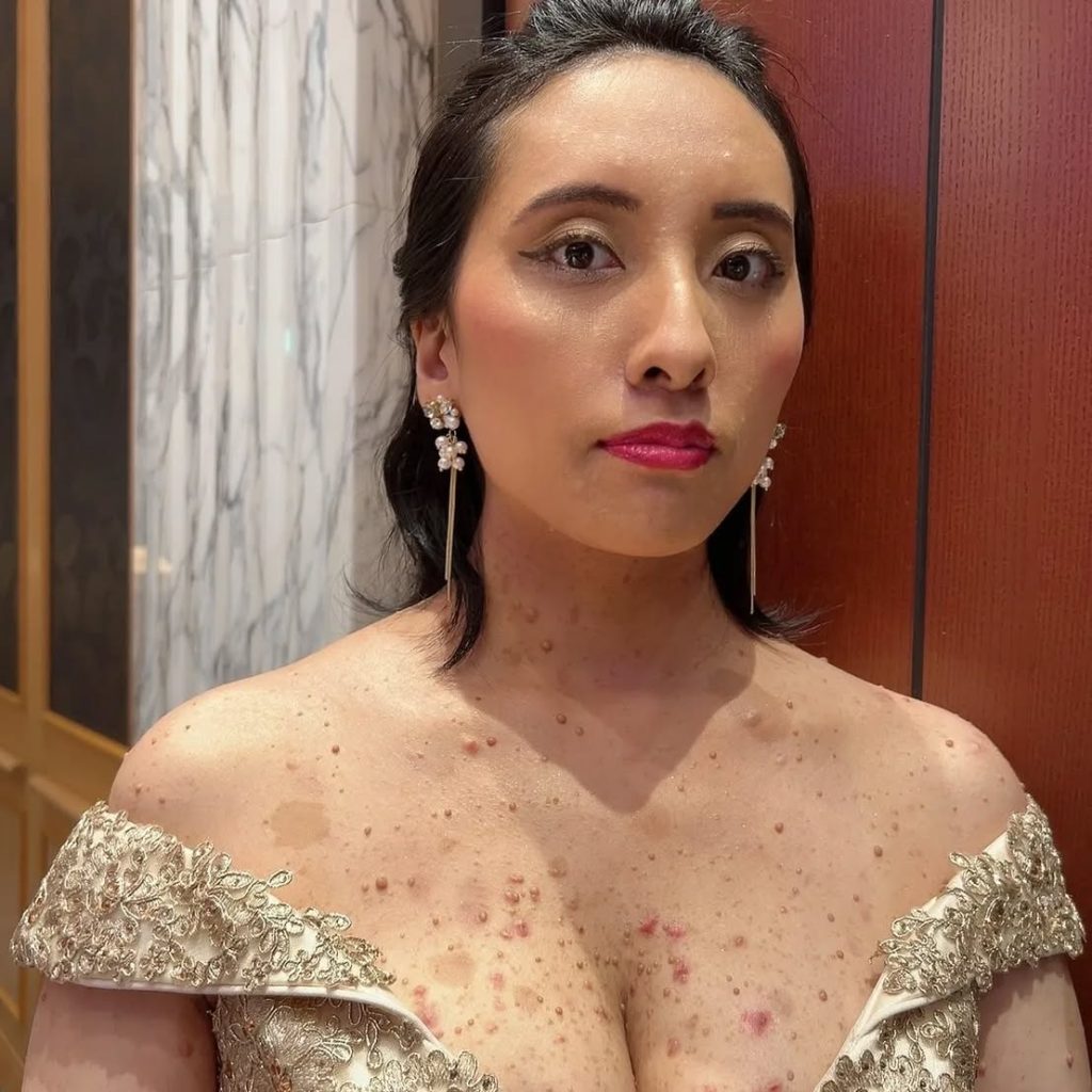 大河内さん 以後はかなり前向きになり、今の自分の病気、レックリングハウゼン病を隠すことなく、世の中の人たちに知ってもらいたいと思い、SNSで発信しようと決意しました。それには、病状を診てもらうのが一番だと思い、自分の胸や背中の写真を撮って、難病を抱えている自分の姿を世界に向けて発信しました。