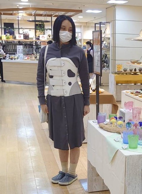 大河内さん 手術する前は、コルセットの装着は3か月と言われていました。でも、うまく骨がくっつかなくて、「あと3か月」「もう半年」と言われ、リハビリをしながらコルセットを装着し続けました。