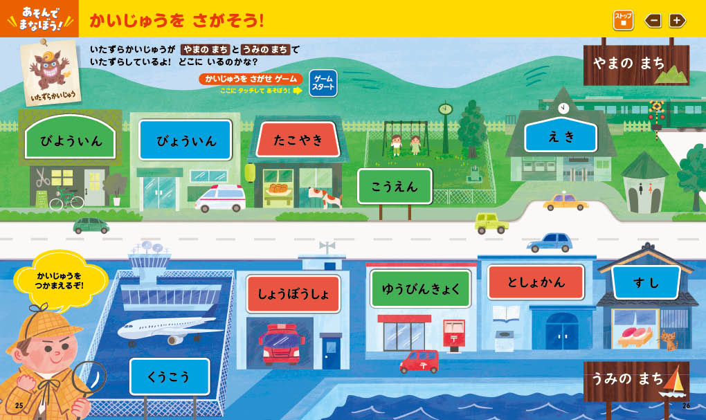 いたずらかいじゅうが町のどこかに隠れてしまいました。いろいろなヒントを元にかいじゅうが隠れている場所を探しましょう!