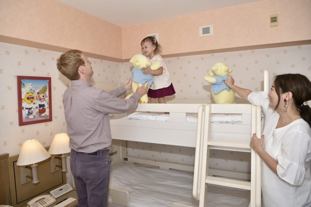 小学生、幼児のいるファミリー向けの「リゾッ太ルーム」は、2段ベッド付きの洋室。客室内にはキッズアメニティが用意され、小学生にはお楽しみバッグのプレゼントも!