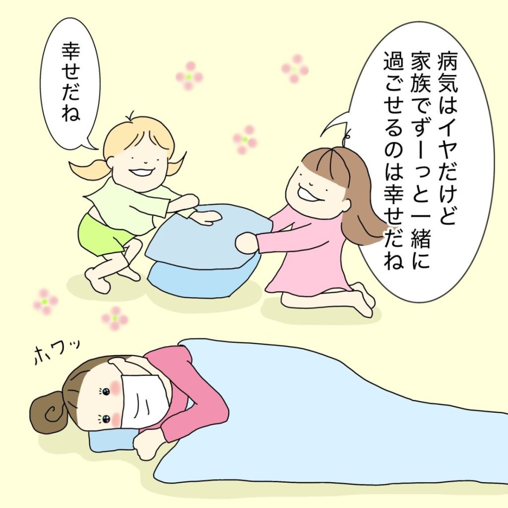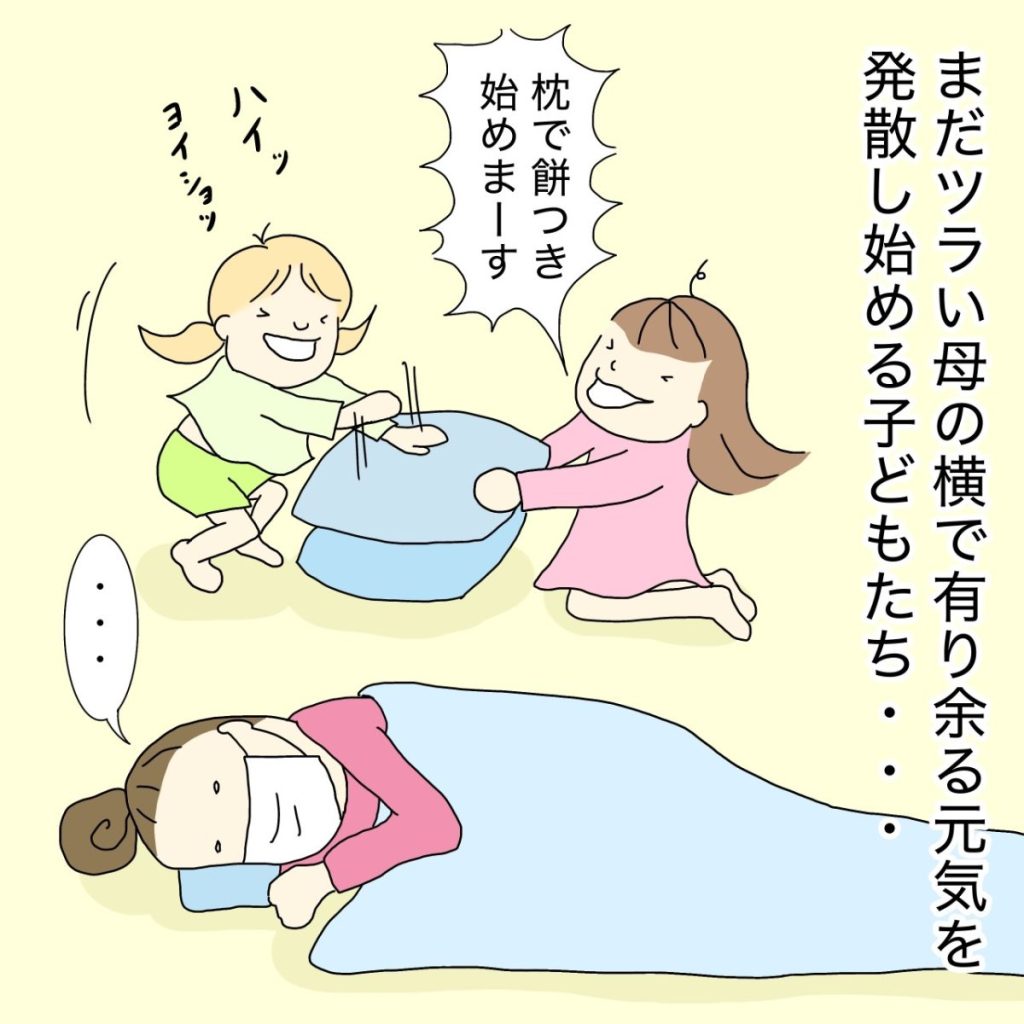 夫と私は高熱、頭痛、咳の症状に悩まされていましたが、子どもたちはなぜか元気。