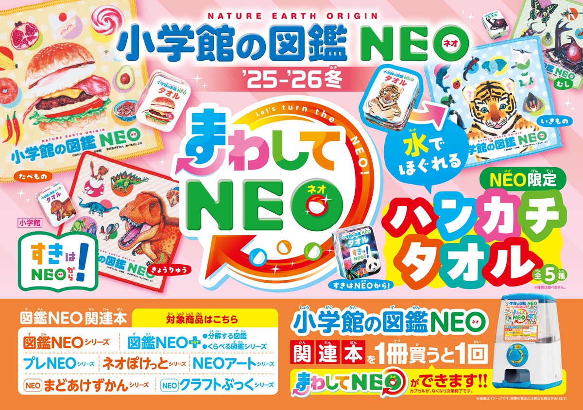 - 対象書籍:図鑑NEOシリーズ、図鑑NEO+ぷらす、分解する図鑑、くらべる図鑑シリーズ、プレNEOシリーズ、NEOアートシリーズ、ネオぽけっとシリーズ、NEOまどあけずかんシリーズ、NEOクラフトぶっくシリーズ