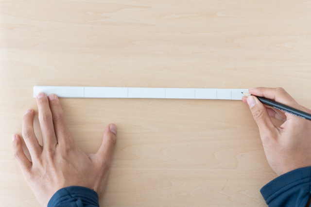 9. 端まで折れたら、左から7cm・6cm・5cm・4cm・3cm・2cm幅に線を引きましょう。