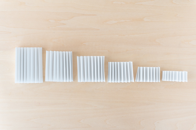 10. 「9」で引いた線でじゃばらをカットします。6つのじゃばらができました。これでパーツの用意はOKです。