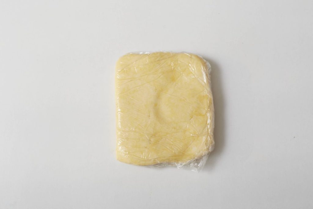 ⑤ ④をラップにはさみ、めん棒で4㎜の厚さに伸ばす。