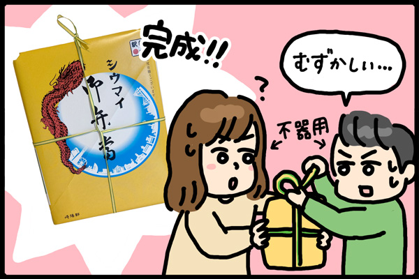 でも、まだ終わりじゃないよ~! 詰めたあとは、蓋を閉めて“紐を結ぶ”ところまでやれたら完成!