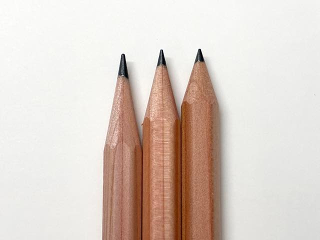 20度(HB)……20~23度が、書いたときの線の細さと芯の折れにくさにおいて標準的なバランスの削り角度とされています。
