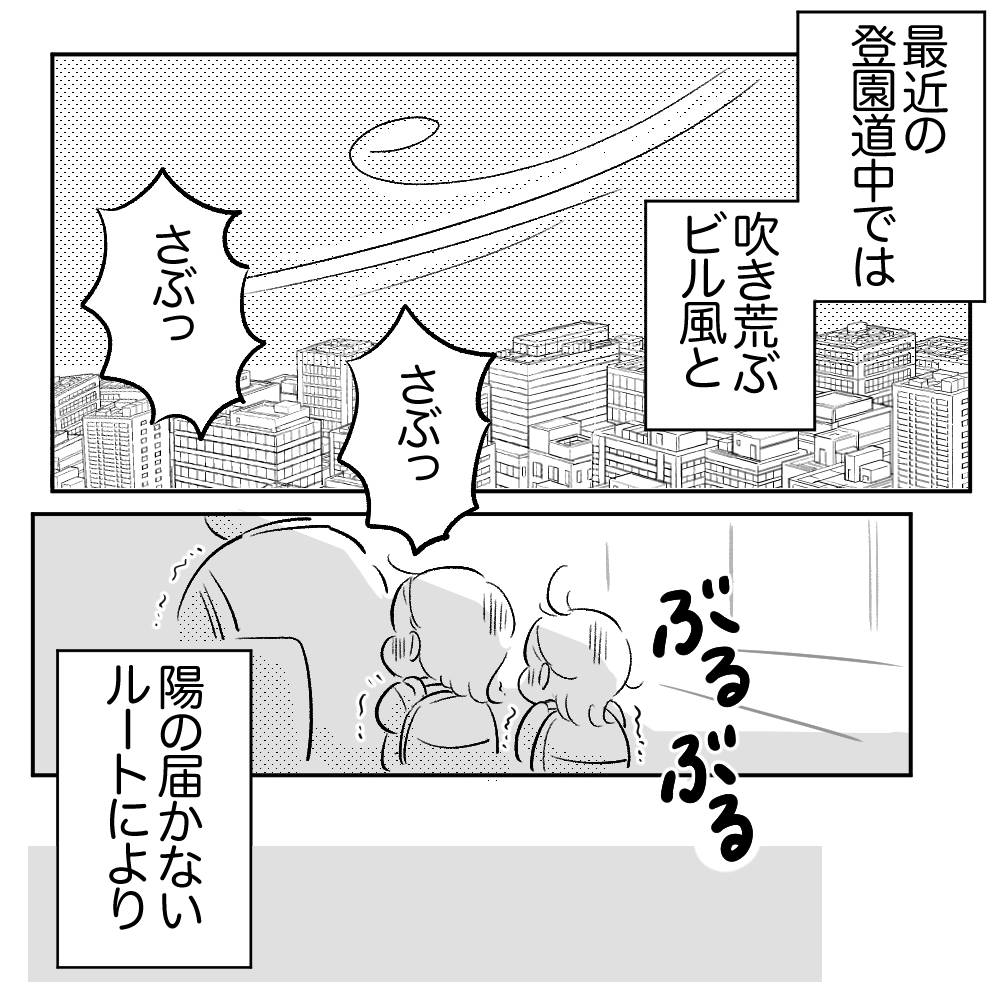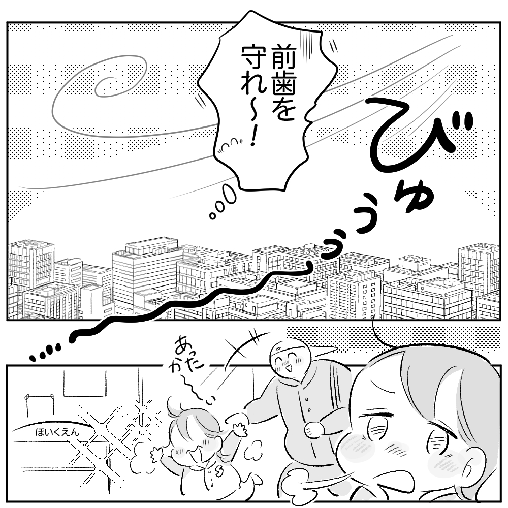こんにちは、まいぽーです! この年末の忙しい時期に虫歯にかかってしまいました! そこから知覚過敏に発展してしまい、いますごく痛いです。今回は吹き荒ぶビル風から前歯を守る母とその息子の話です!
