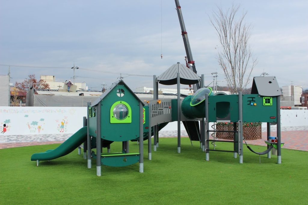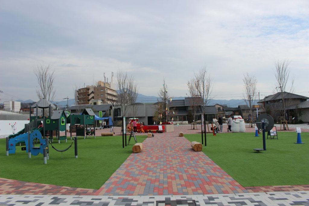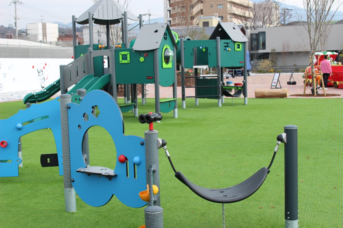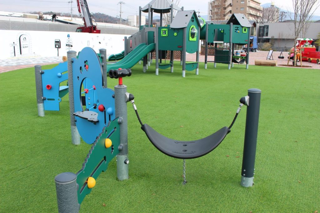 また、遊具があるエリアには、人工芝が敷かれていて、天気のいい日は裸足になって走り回るのも気持ちよさそう。