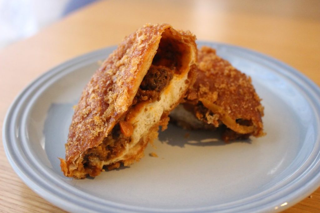 子どもにも人気の「コーンエッグ」は、開店当時からあるロングセラー商品。ボイルエッグとスイートコーンがたっぷりと入っています。また、長時間煮込んで作られるカレーを包んで揚げた「カレーパン」も人気のパンです。衣には生パン粉をつけて揚げられているので、外はサクサク。辛くないので子どもも食べられますよ。