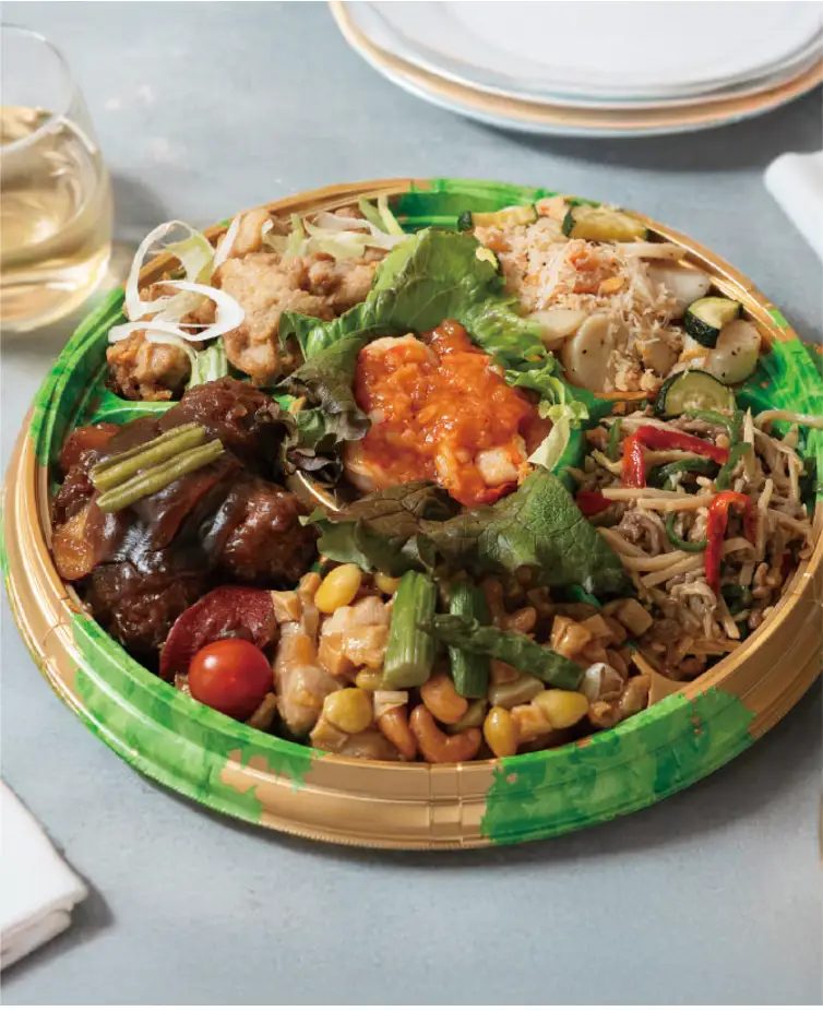 成城石井自家製 大海老チリソースと国産豚の黒酢団子と4種料理の盛り合わせ(大)