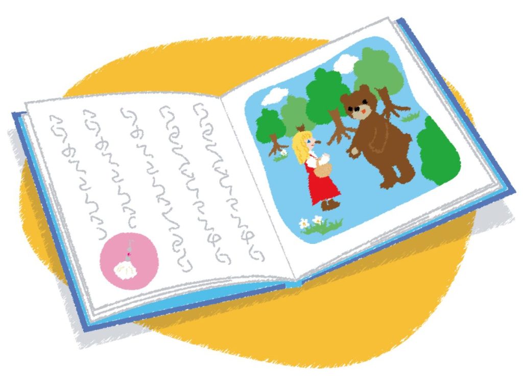 【低学年】(1〜2年):数ページ〜10分程度で読める絵本や短編。繰り返し表現やリズムのある作品が語感を育てます。音読・読み聞かせ中心で、最初と最後の変化を確認します。