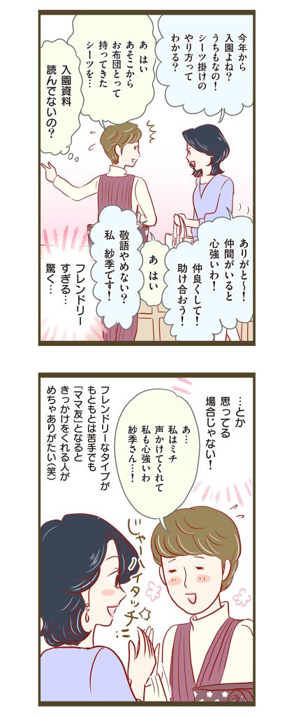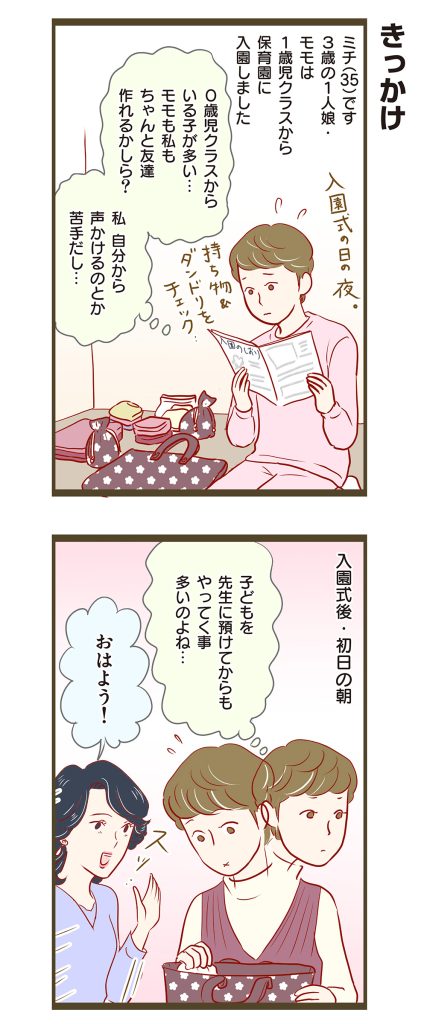最初は気軽に話せる人がいなかったり、顔見知りがいなくてドキドキしてしまうかもしれませんが、大丈夫。ママ友とは長期スパンのお付き合いになるので、時間をかけながらゆっくり絆を深めたり、人柄を知ることができます。