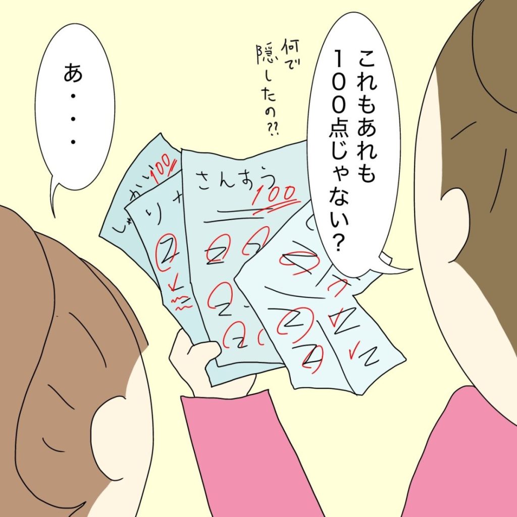 「次隠すときは100点のテストは隠さないように気をつける」とへらへらしながら言ってきたので、しっかり雷を落としました(笑)。
