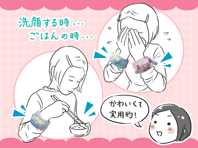 冬はふとしたときに袖が邪魔になることが多いので実用的。びしょびしょにしてしまいがちな洗顔時や、うっかり食べ物に触れてしまいそうになる食事時。ちょっとしたアイテムがかわいいのは気分が上がるよう。